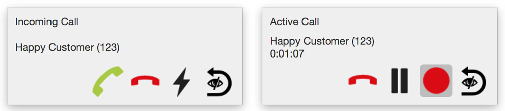 What’s more, by using CTI technology businesses can provide employees with elements of telephony functionality without needing to use their phones. For example, the graphical pop up shown above provides not only caller specific information but delivers additional telephony functionality including placing the caller on hold, starting a recording and performing a call transfer.