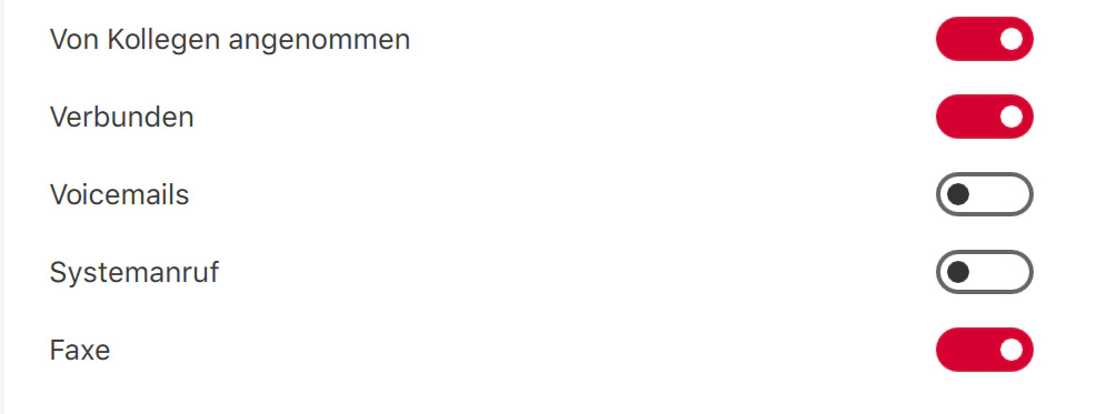 Mit den ersten drei Einstellungen können Sie steuern, welche Anrufarten in Bezug auf Ursprung, Anrufrichtung und Ergebnis wichtig sind.