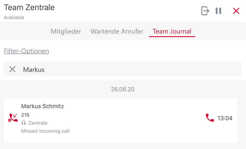 pascom Team Anrufjournal Suche