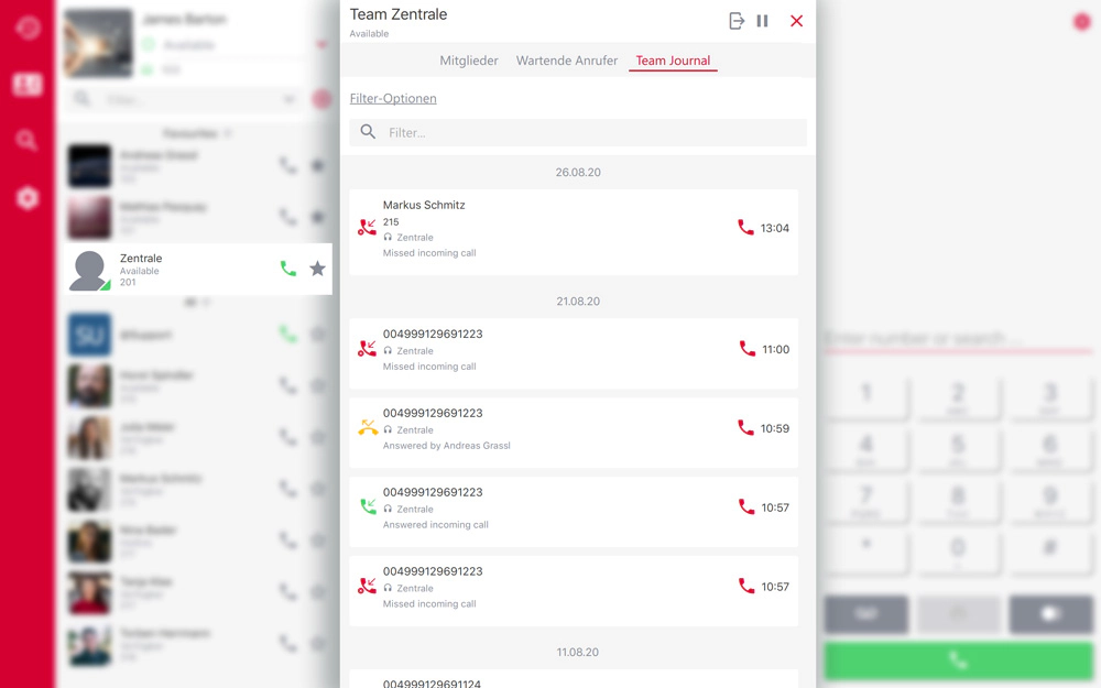 pascom Team Anrufjournal