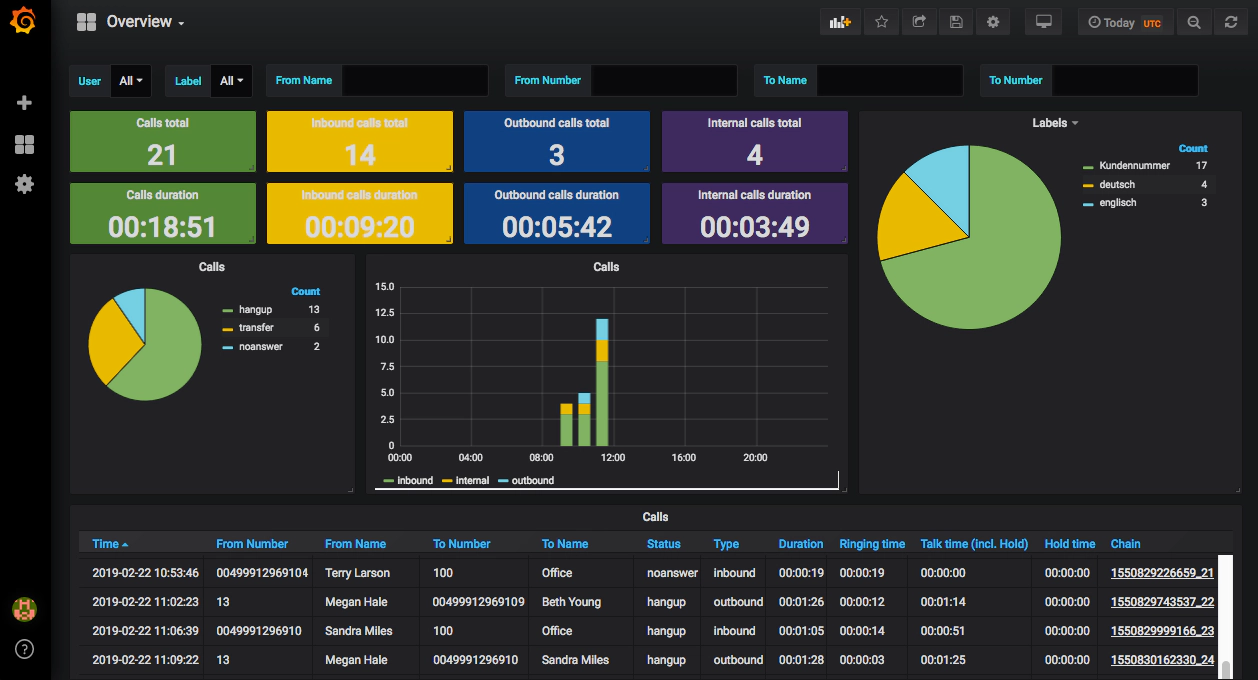 Mit pascom 18.05 haben wir unsere neuen webbasierten Wallboard-Tools in pascom Analytics integriert. Da die neuen Wallboards webbasiert sind, können sie sehr schnell und äußerst einfach an die individuellen Anforderungen Ihres Unternehmens angepasst werden. Damit hat Ihr Team einen sofortigen Echtzeit-Überblick über die Leistung Ihrer gesamten Contact Center-Telefonie. Rufauswertungen können komfortabel und schnell vorgenommen werden.