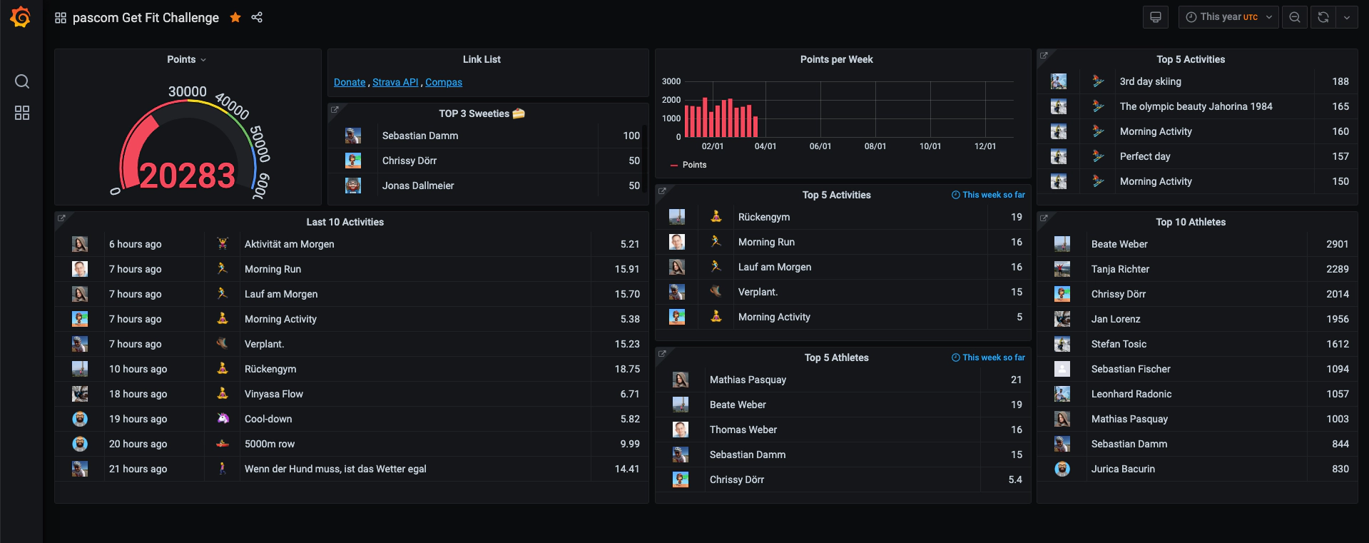 Das Get Fit Challenge Dashboard wurde bereits aktualisiert und wir befinden uns wieder im roten Bereich, was die gesammelten Punkte angeht. Das bedeutet, dass es immer noch einen Berg an sportlicher Arbeit gibt und das Team dadurch weiterhin Geld für unsere gewählte(n) Wohltätigkeitsorganisation(en) sammelt. Seit unser Charity Ziel erreicht wurde, konnten wir weitere 252 Punkte auf dem Punktekonto gutmachen und setzen uns intern schon wieder weitere Punkteziele.