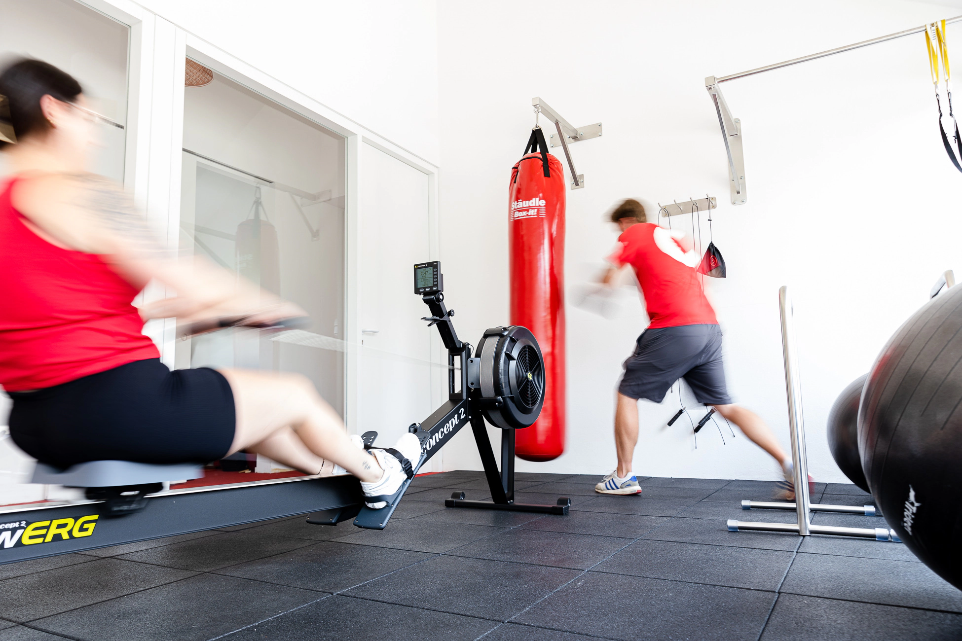 pascom Mitarbeiter trainieren im hauseigenen Fitnessraum
