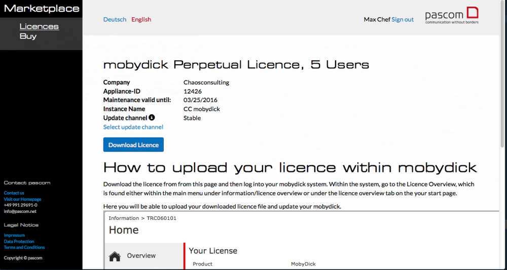 Mehr Unabhängigkeit und Flexibilität für Kunden und Partner war das Ziel bei der Implemtierung des neuen mypascom Kunden- & Partnerportals. Kunden können absofort Ihre mobydick Appliances und Lizenzen selbstständig verwalten. Als mobydick Partner haben dieses außerdem die Möglichkeit deren Kundenanlagen einzusehen und zu verwalten. Kunden wie auch Partner sind nun nicht mehr auf pascom angewiesen und können nun zu jeder Tages- und Nachtzeit Ihre Anlagen erweitern, aktivieren oder Lizenzen umzuziehen.