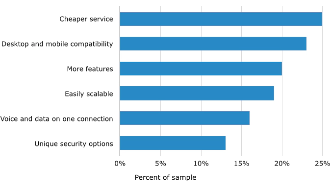 Finally, on the table above, it is good to see that less and less companies are hesitant to make the switch because they do not know what VoIP is and how it works, which at least means that they are informing themselves regarding IP phone systems even if they are not quite ready to make the transition. Even more pleasing to read is that the availability of reliable internet connections is becoming less and less of a problem, which will also go a long way to overcoming the issue of PSTN vs VoIP quality.