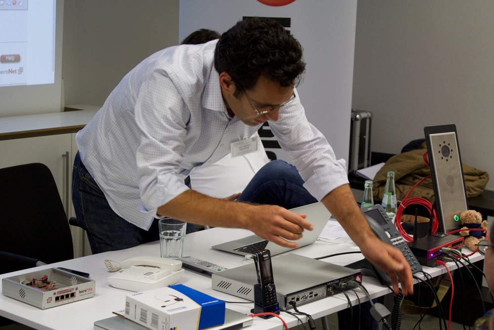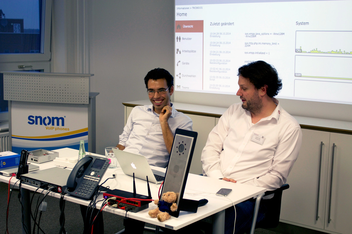 Das Event begann stilvoll in Berlin im Haupsitz der snom Technology AG, die wie üblich ausgezeichnete Gästgeber waren. Für unseren ersten Versuch einer Roadshow, konnten wir keinen besseren Start erwartet. Und das obwohl Montag, wie wir alle wissen, ein echt schlechter Tag für die meisten Menschen darstellt - erster Tag der Woche, tausende Emails, und und und. Wir hatten lange überlegt, was wir unseren Gästen alles bieten würden. Wir wollten nicht nur klassische Firmenpräsentationen, sondern entschlossen uns auch einen praktischen Teil mit einzubauen. In unseren fast perfekten Vorführungen der “Dangerous Demos” und dem Frage und Antwortteil erhielten unsere Gäste einen ideallen Einblick in die Welt von Voice over IP. Während der Veranstaltung erhielten wir auch ein echt schönes Feedback von unseren Partnern über unsere neue Asterisk Video Tutorial Serie zusammen mit unseren VoIP Guys Blog-Artikeln. Es ist immer schön, positives Feedback zu bekommen - dafür auch ein großes Danke!