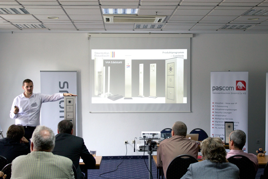 Gemeinsam mit unseren Partnern aus der VoIP-Industrie, snom technology AG, beroNet GmbH, HFO Telecom und StentonfonBaudisch nahmen wir unserer asteriskbasierenden MobyDick Telefonanlage auf Tour und besuchten Berlin, Köln und Frankfurt. Als Erstes möchte ich die Gelegenheit nutzen, allen unseren Gästen zu danken, dass Sie sich die Zeit nahmen, uns auf der Roadshow 2014 zu besuchen. Wir wissen, einige von Ihnen sind von weit angereist, hatten mit Streiks der Bahn und schrecklichen Verkehrsstaus zu kämpfen - daher ein großes Dankeschön und wir freuen uns darauf, Sie alle bald wieder zu sehen.