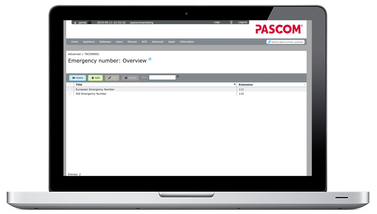 Zusätzlich sollten Sie darauf achten, jede Ihnen bekannte Notrufnummer in der Konfiguration der Telefonanlage zu hinterlegen. Mit pascom ist dies relativ unkompliziert und kann durch Befolgen der folgenden Anweisungen in Sekundenschnelle erledigt werden.